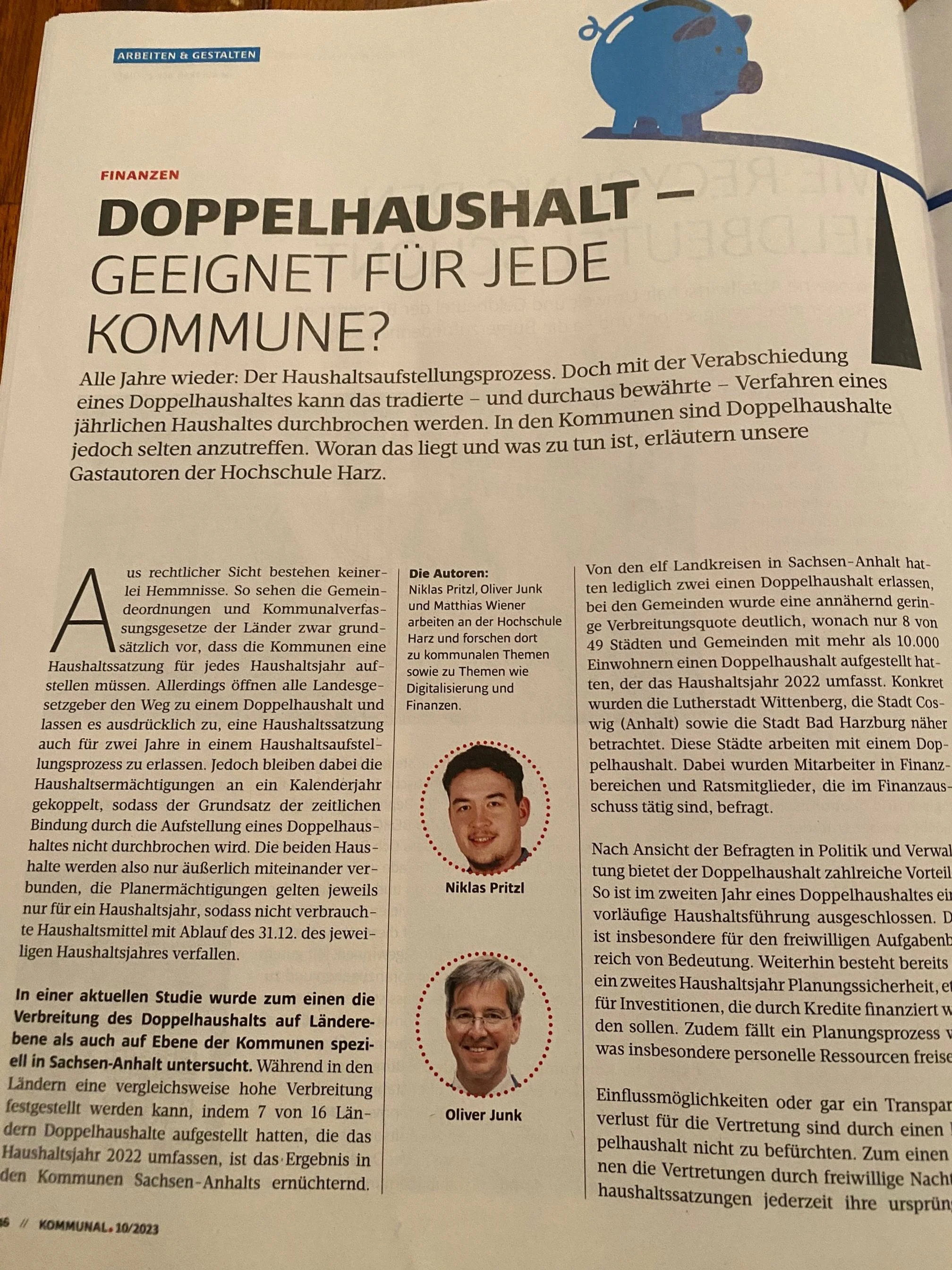 "Doppelhaushalt - Geeignet für jede Kommune?" (Beitrag in Kommunal. 10/2023, S. 46 f.)
